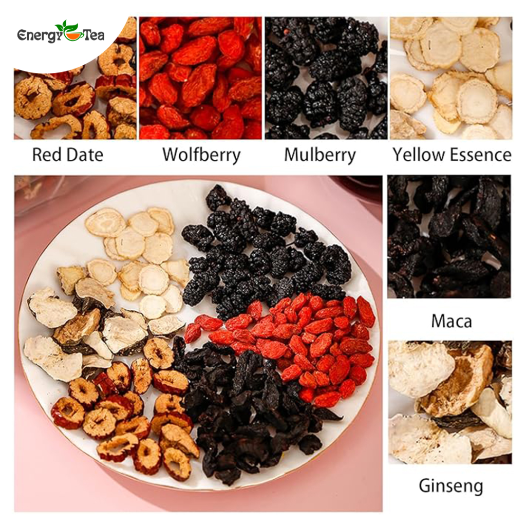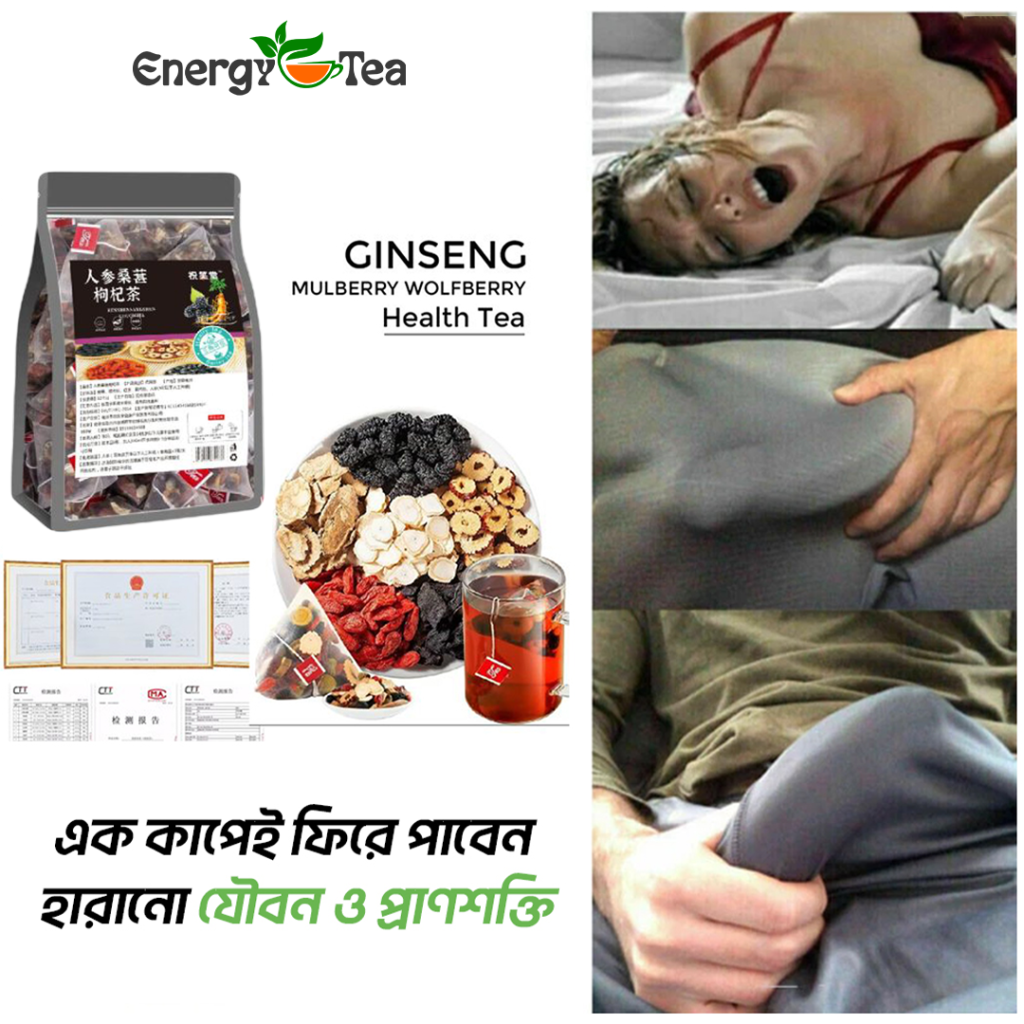 Energy Tea! জিনসেং, মালবেরি উলফবেরির শক্তিশালী ভেষজ সংমিশ্রণে তৈরি এই চা শরীর ও মনকে ফিরিয়ে দেয় নতুন শক্তি ও প্রশান্তি। পুরুষের কর্মক্ষমতা ও নারীর হরমোন ব্যালেন্স রক্ষায় এটি অত্যন্ত কার্যকর। শতভাগ প্রাকৃতিক উপাদানে তৈরি, চিনি মুক্ত ও কোরিয়ান ফর্মুলায় প্রস্তুত এই টি সনদপ্রাপ্ত এবং নিরাপদ। এখনই অর্ডার করুন — Energy Tea! দিনে এক কাপেই স্বাস্থ্য সুরক্ষা!